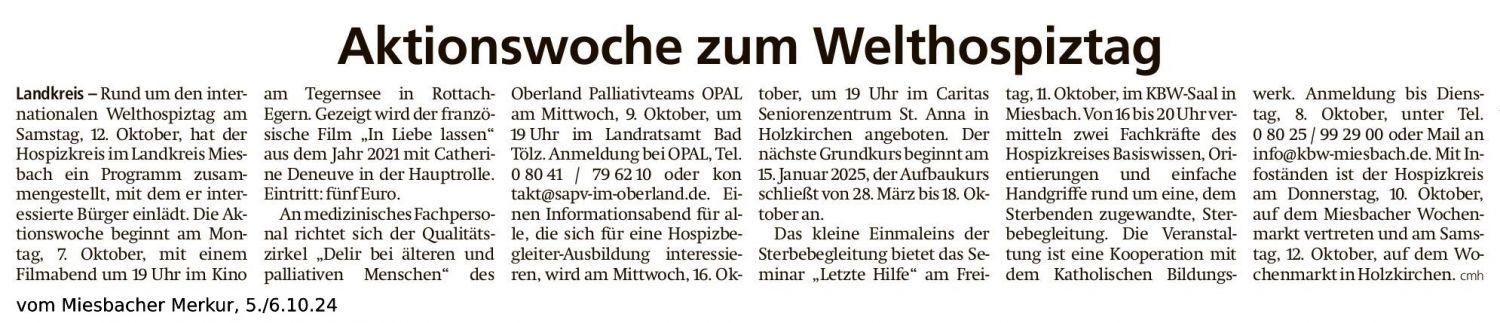 Hospizwoche im Landkreis Miesbach